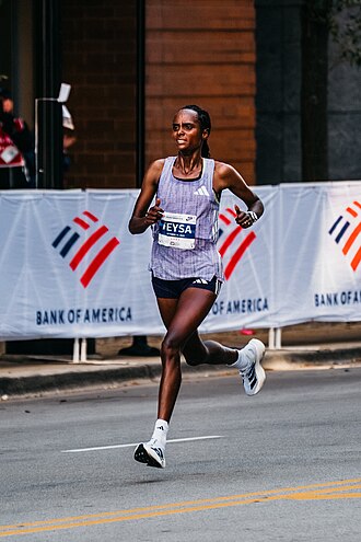 Biography of Hawi Feysa (excerpt)Hawi Feysa (born 1 February 1999) is an Ethiopian long-distance runner specializing in the marathon, road races, as well as track and cross country. She gained international recognition with her record-breaking win at the 2024 Frankfurt Marathon and her third-place finish at the 2025 Tokyo Marathon.