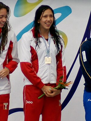Andrea Cedrón, born December 24, 1993, in Trujillo, Peru, is a professional swimmer known as “the Peruvian siren.” The daughter of Carlos Cedrón Medina and Jessenia Rodríguez Lescano, she studied at the Institución Educativa Particular Inmaculada Virgen de La Puerta and became her country’s top female swimmer.