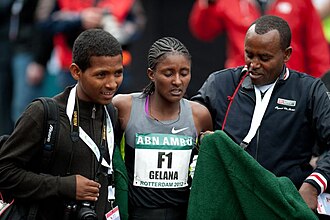 Erba Tiki Gelana (born October 22, 1987, in Bekoji) is an Ethiopian long-distance runner specializing in marathon races.She rose to prominence in the early 2010s, winning the Amsterdam Marathon in 2011 and the Rotterdam Marathon in 2012. In 2012, she reached the peak of her career by winning the Olympic gold medal in London with a new Olympic record.